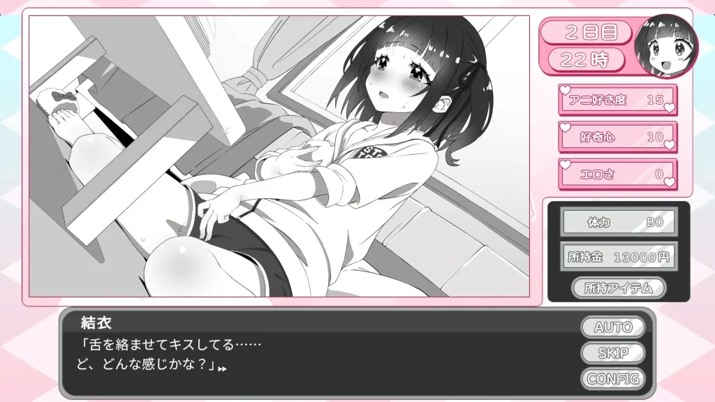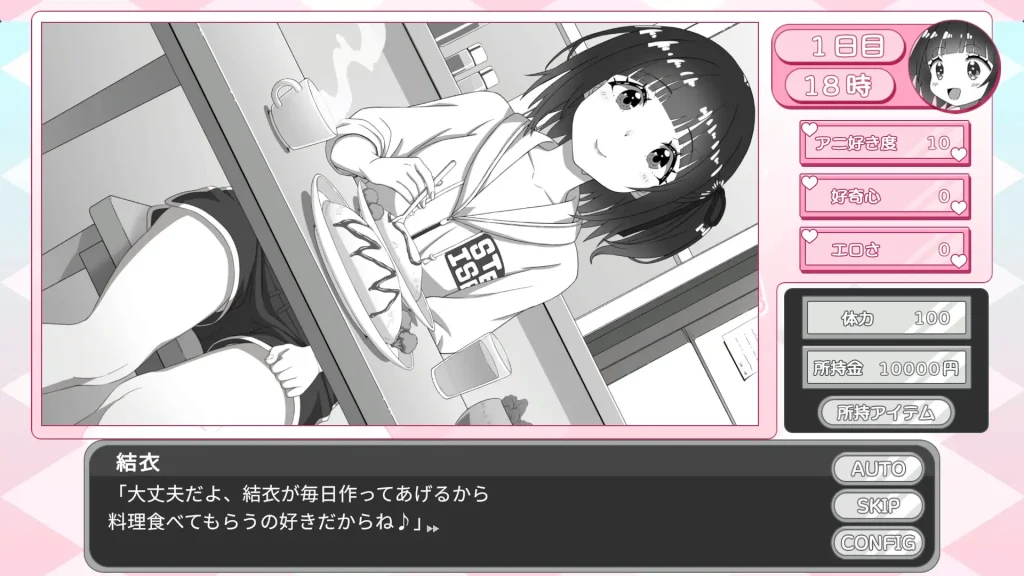 会話、オカズの配置、通販での買い物、バイトなど、プレイヤーの選択が日々の進行に影響を与えていきます。